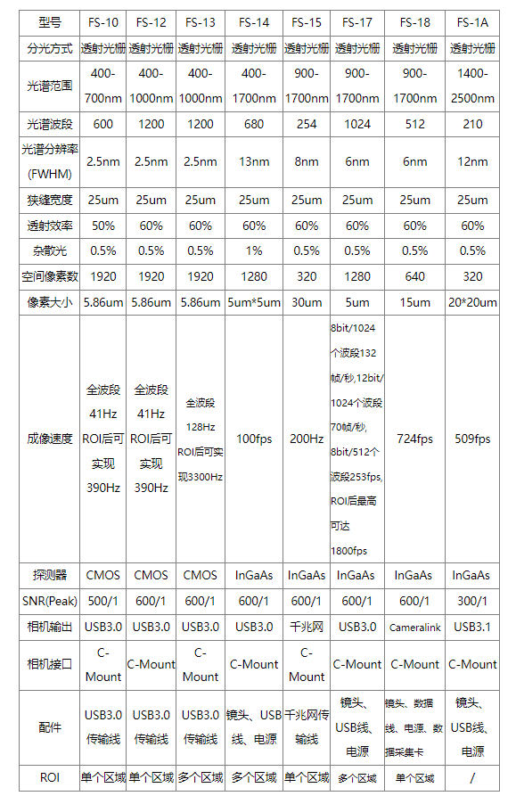 高光譜相機(線掃描) FS1X系列
