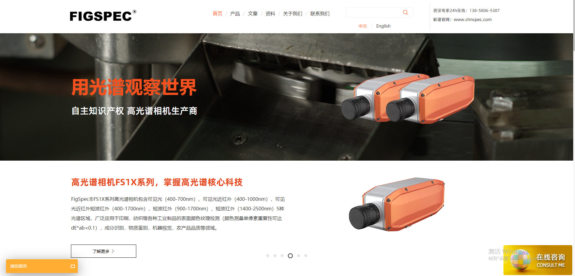 彩譜科技是國內高光譜相機的標桿企業,由浙江大學光學博士團隊主導研發,擁有多項自主知識產權。其產品覆蓋可見光(400-700nm)、近紅外(400-1000nm)及短波紅外(900-2500nm)光譜范圍,波長分辨率高達2.5nm,成像速度可達128Hz(全波段)或3300Hz(ROI區域處理)。彩譜高光譜相機在農業病蟲害監測、水質分析、礦物勘探等領域表現突出,提供專業售后服務,是國產高光譜技術突破的典范。