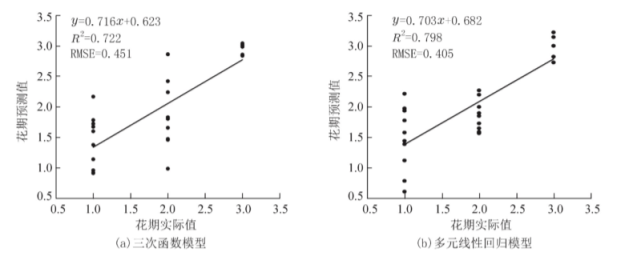 ④薇甘菊不同花期與光譜反射率及光譜一階微分在529~671、734~744、770~786、791~796 nm及833~838 nm極顯著相關,以NDVI、RVI、GI、DVI和HI特征參數構建的多元線性回歸模型的擬合效果最佳(R2=0.974,RMSE=0.503).