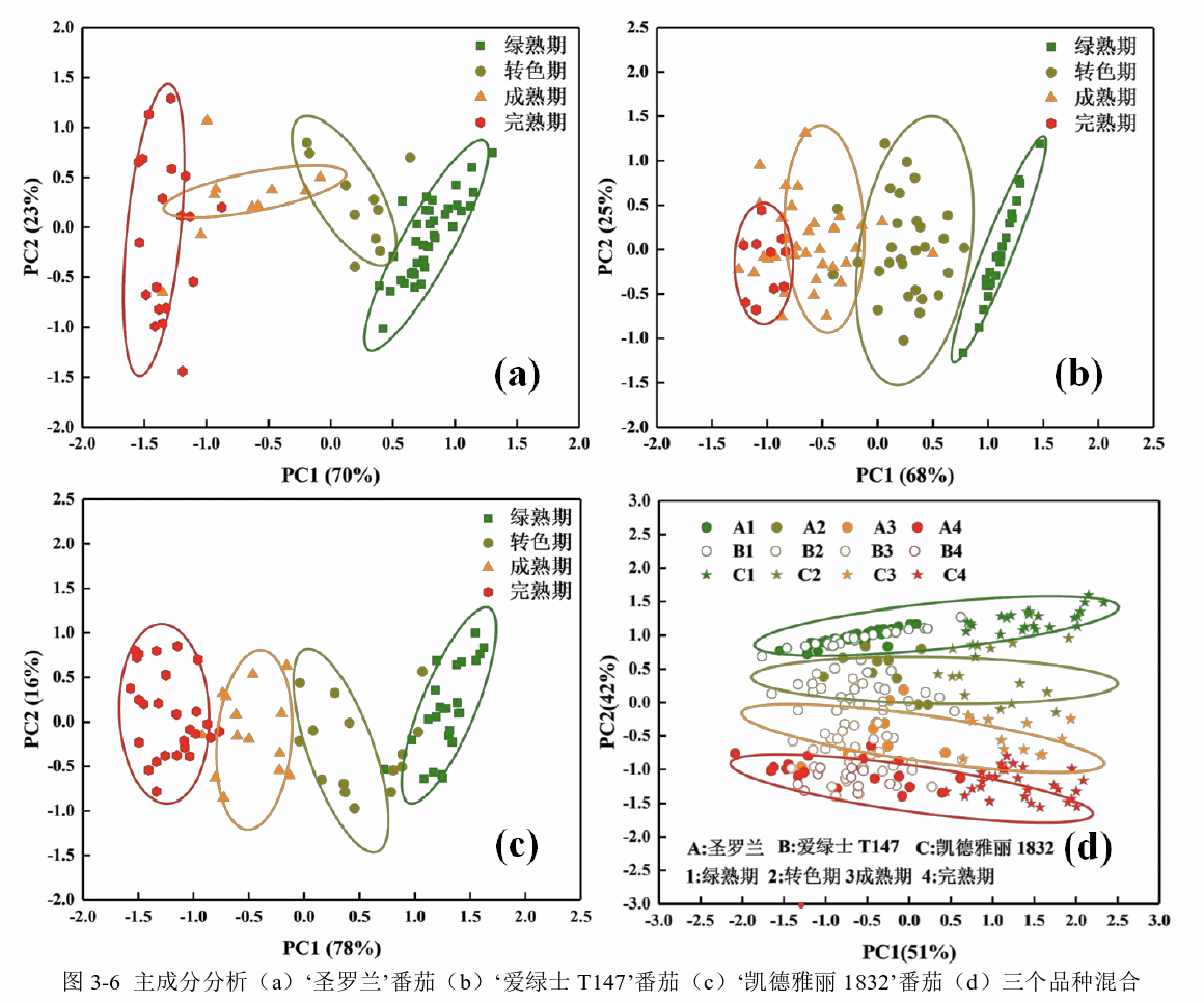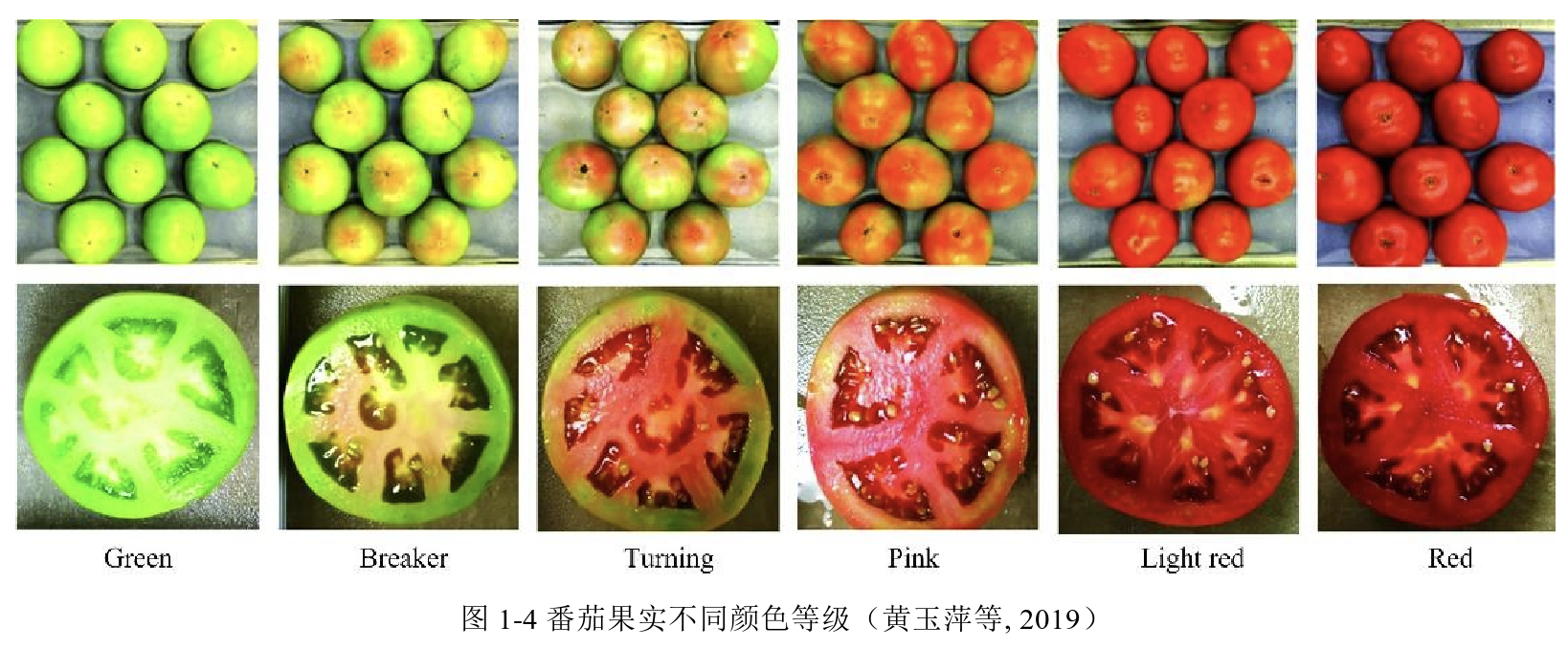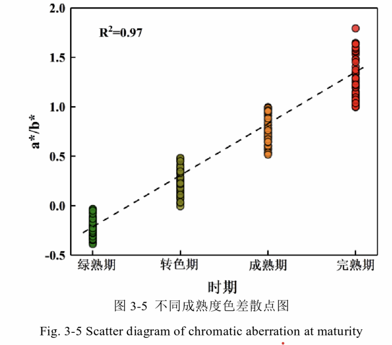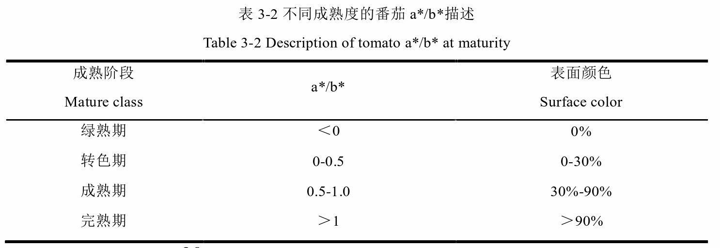 確認番茄果實成熟度:a/b 番茄果實顏色定義變量(Arias et al, 2000)。計算a*/b*,基于 a*/b*值劃分的番茄果實不同成熟度。